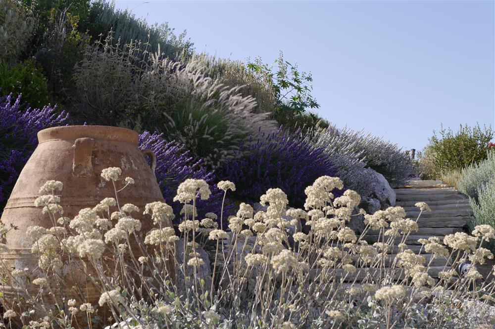 Mediterranean gardening and usage of Mediterranean plants means water wise and environmental friendly gardening. You create a garden that changes during the seasons and therewith creates different atmospheres throughout the year.