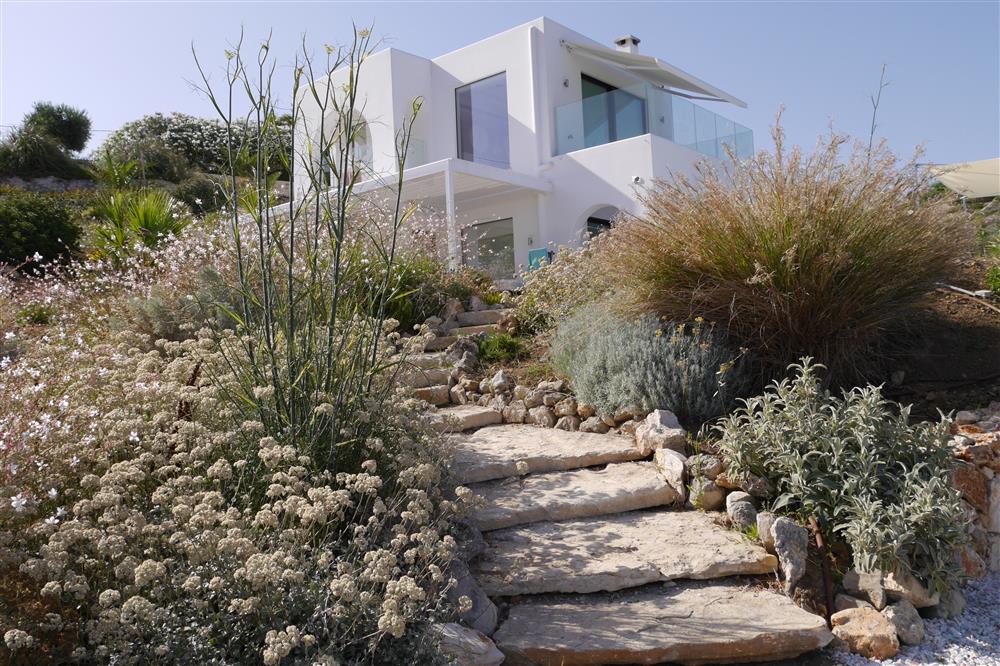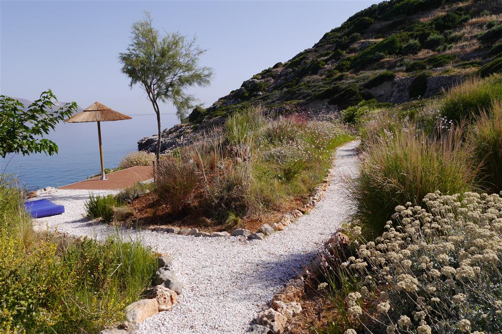 This outstanding huge plot of about 10’000m2 is situated directly at the shore. Almost half of the plot are clean garden areas! Heavy winter storms and intensive salt spray make gardening to a challenge. Furthermore the surrounding coastal landscape becomes one with the garden. Consequently Mediterranean and local plants that stand the local climate conditions and fit inside the natural environment were selected.